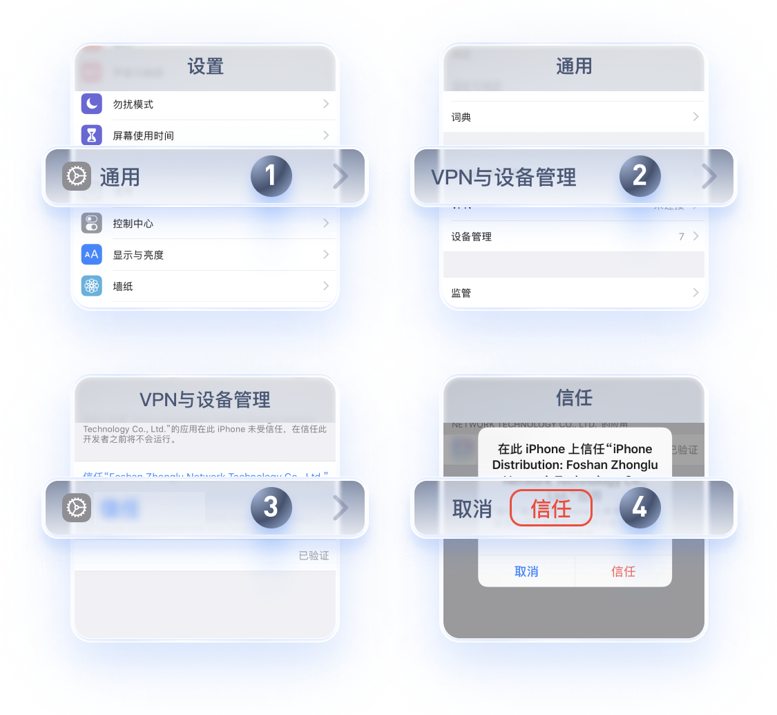安装后需要点击「一键信任」或进行以下设置才可以使用